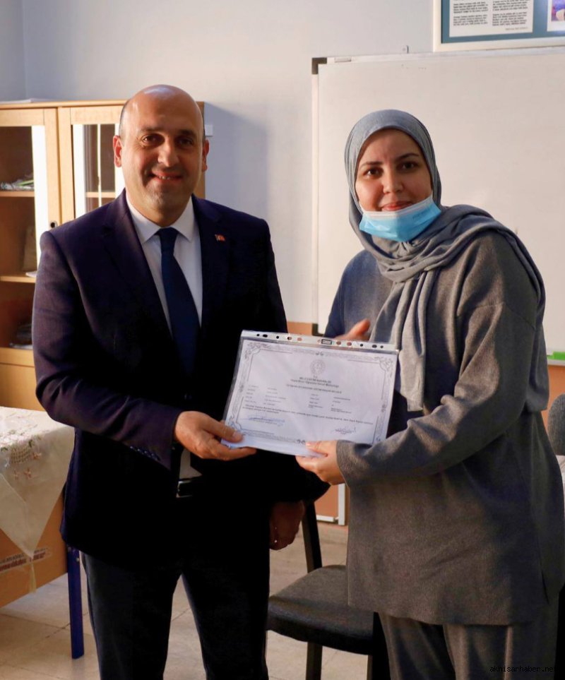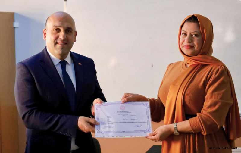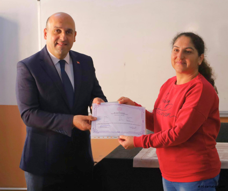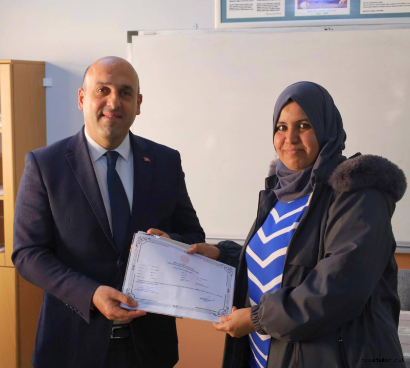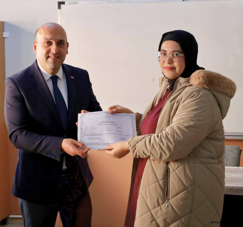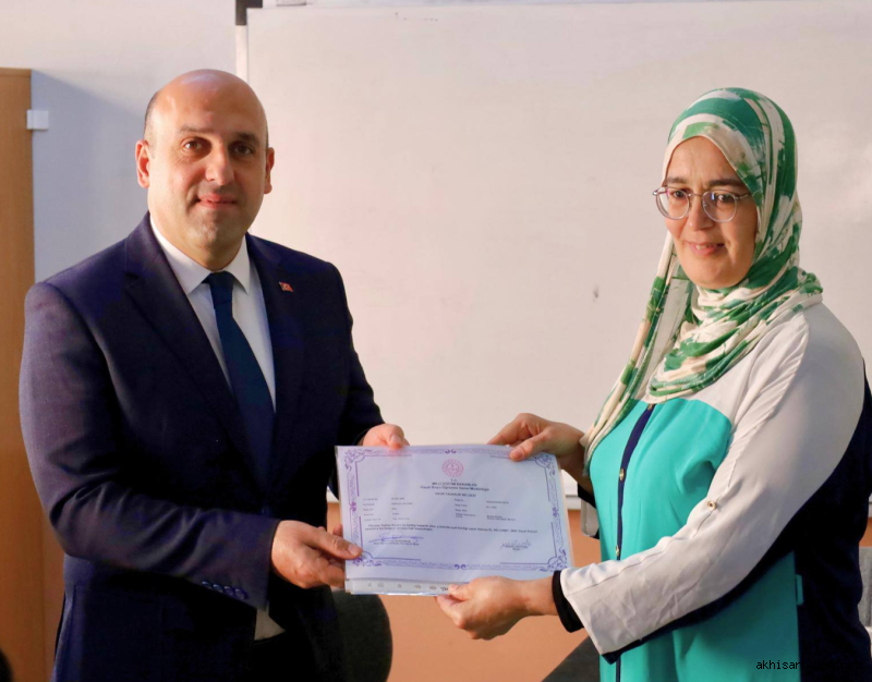 Düzenlenen törene Akhisar Kaymakamı Mustafa Can, İlçe Millî Eğitim Müdürü Mükremin Karasu, Şube Müdürü Mahmut Yağmurlu, Halk Eğitimi Merkezi Müdürü Mahmut Pehlivan, müdür yardımcıları, öğretmenler ve kursiyerler katıldı. Törende kursiyerlerin yaşadığı mutluluk ve gurur, duygu dolu anlara sahne oldu.