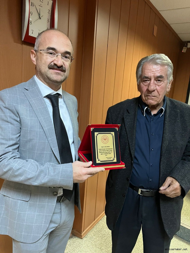 Programda, derneğe ve hastaneye katkılarından dolayı Hasan Kirazoğlu’na da Başhekim Hamza Bambal tarafından teşekkür plaketi takdim edildi.